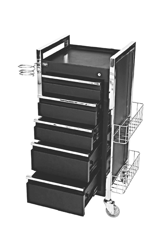 Midnight 5 Drawer Hairdressing Beauty Trolley - Black Frame